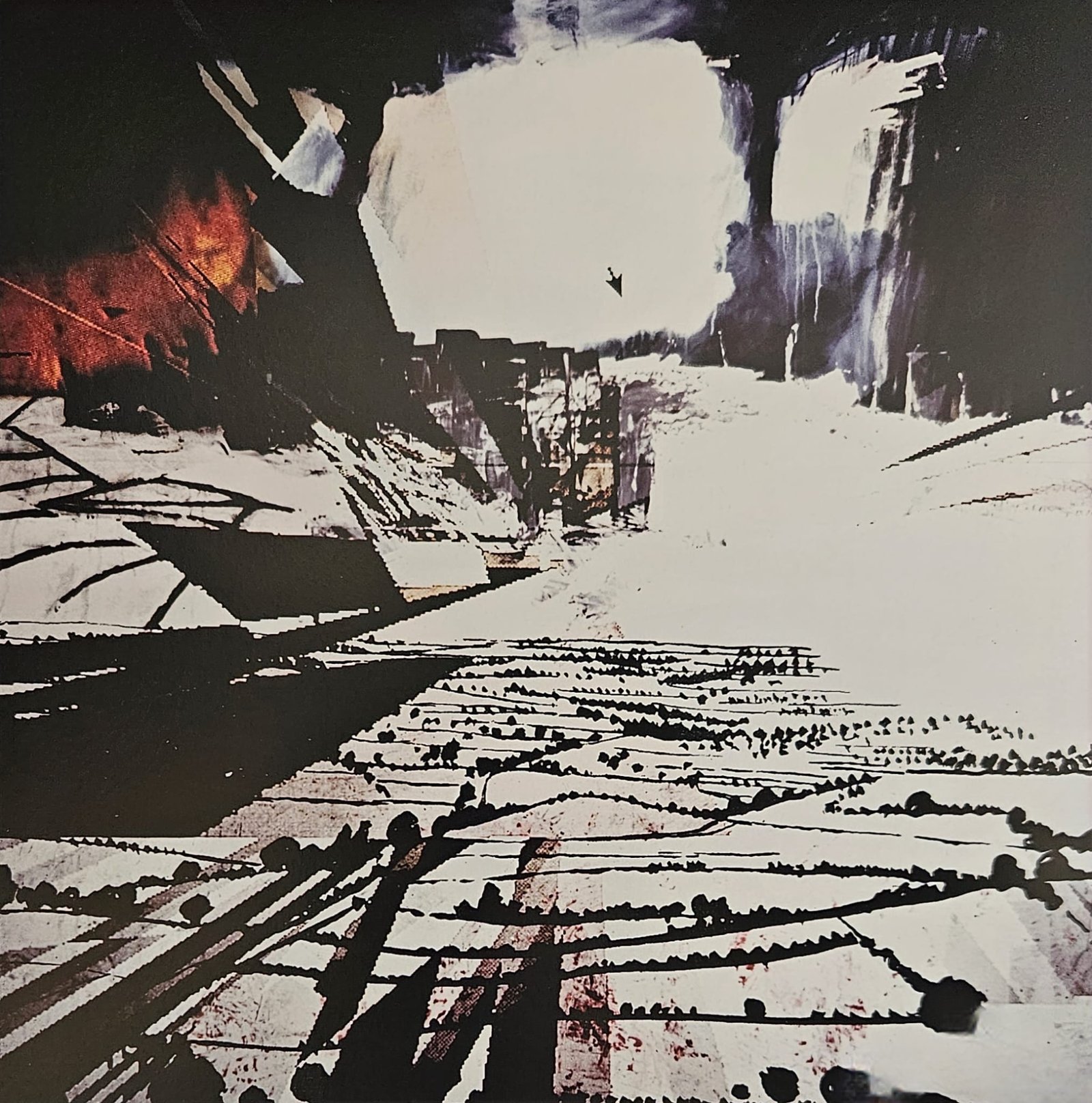 He eventually started using knives and sticks in his process, adding a more urgent dimension to his art. The painting were apocalyptic, with red skies, white fields, weird creatures… At some point Donwood decided to stop painting and take pictures of the paintings. Nigel Godrich, Radiohead’s longtime producer, discovered a piece of software that could convert digital pictures into gradient 3D landscapes. It would render bright parts like mountains and dark colours as deep valleys… Yorke and Donwood began exploring these rendered terrains, combining them with the original paintings. Then they reworked the results both digitally and by hand. Some odd landscape with frozen mountains, dark red skies, and more odd creatures or pools of blood starting to take shape.