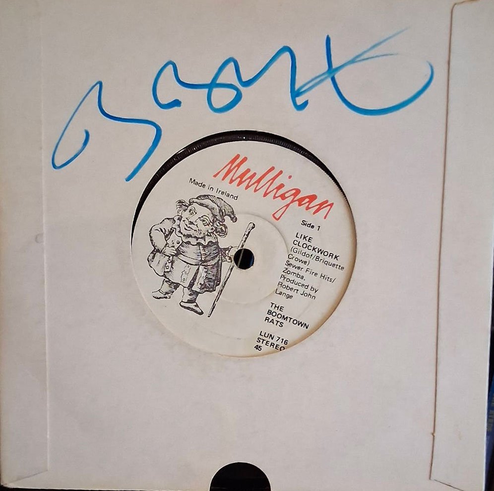 I have always liked Bob Geldof and The Boomtown Rats, a very musically astute band. And this record has huge significance in Irish Pop and music history. The late Larry Gogan played “Like Clock Work” by the Boomtown Rats as the very first record on RTE Radio 2 (now 2Fm) when the station launched on May 31st 1979. I love that I have the original single on Mulligan records and of course signed by Mr. Geldof because they were signed to ensign records when they went the UK.