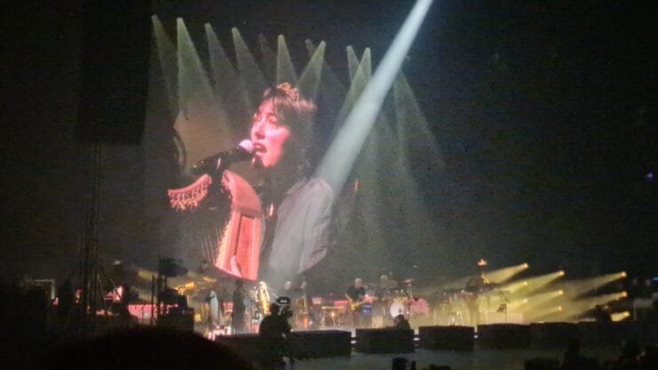 After Wish You Were Here, Gilmour introduced his band. That’s when I noticed a silhouette near the keyboards, back turned to the audience. When Gilmour called the final name, the figure stepped into the spotlight, holding a harp—it was Romany Gilmour. Together, father and daughter performed Between Two Points by the Montgolfier Brothers, her harmonic voice blending beautifully with his melancholic guitar. The audience erupted in applause as I wiped my eyes yet again.