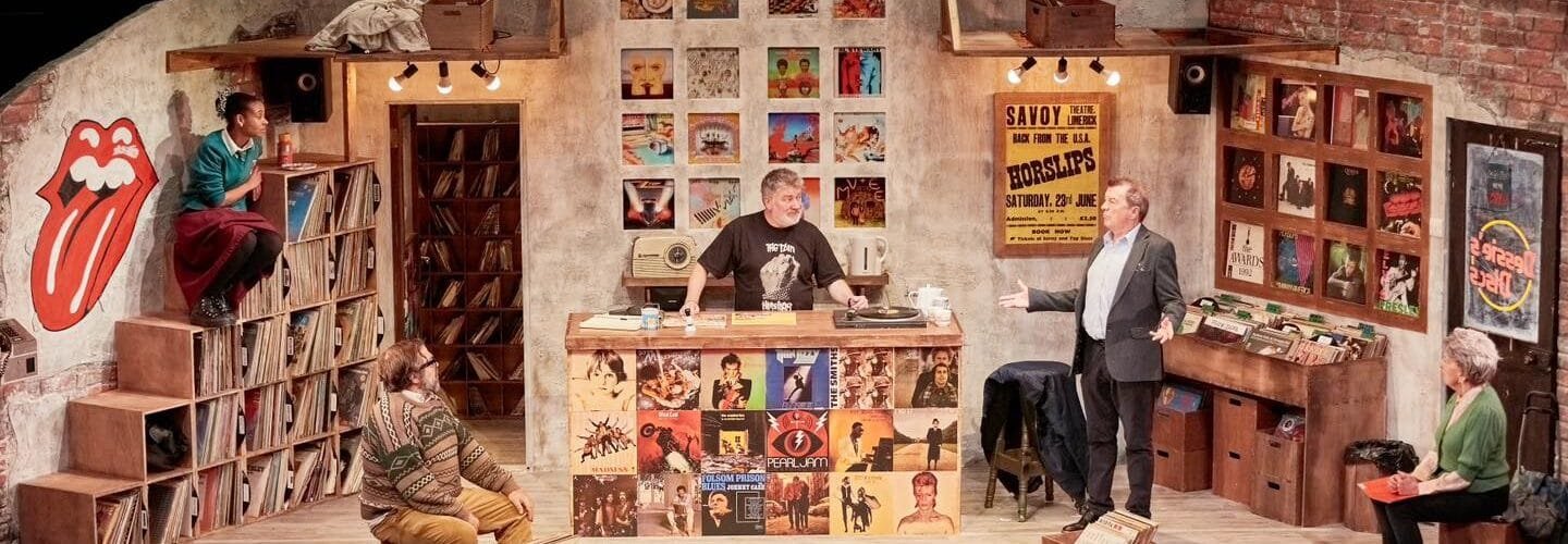 The time has finally come. I’ve been waiting impatiently since attending the public reading of Mike Finn’s Wreckquiem. Everything about it spoke to me — from the fact that it takes place in a record shop (I could spend my days in one, if I had the chance) to the underlying message about progress in a world that moves too fast. The reading alone triggered so many emotions. I walked into the Lime Tree Theatre with my heart open and ears ready to appreciate the full production. I was not disappointed.