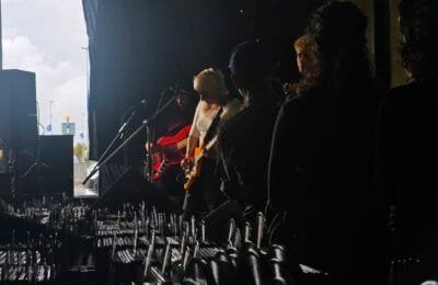 Dessie’s Disc really looked the part: outdated, maybe, but full of warmth. While the walls could use a fresh coat of paint, the place exudes the warmth and welcoming feeling of a good record store. Countless records fill the shelves and crates are scattered across the floor. Behind the counter, the audience can admire a religious-like display of album covers, arranged in a grid that forms a giant cross. The rest of the walls are covered with posters, records, and a striking painting of the Rolling Stones’ giant mouth logo.